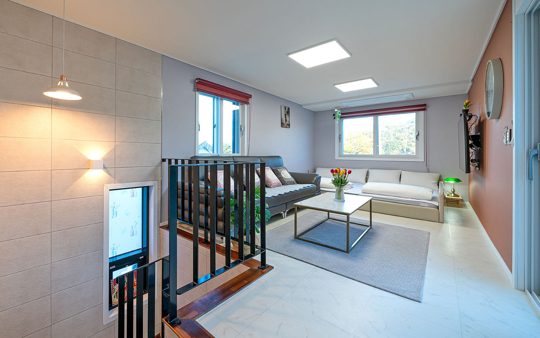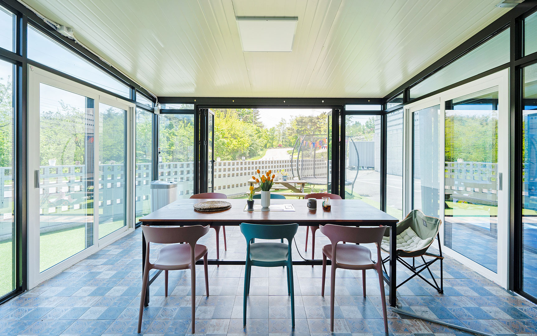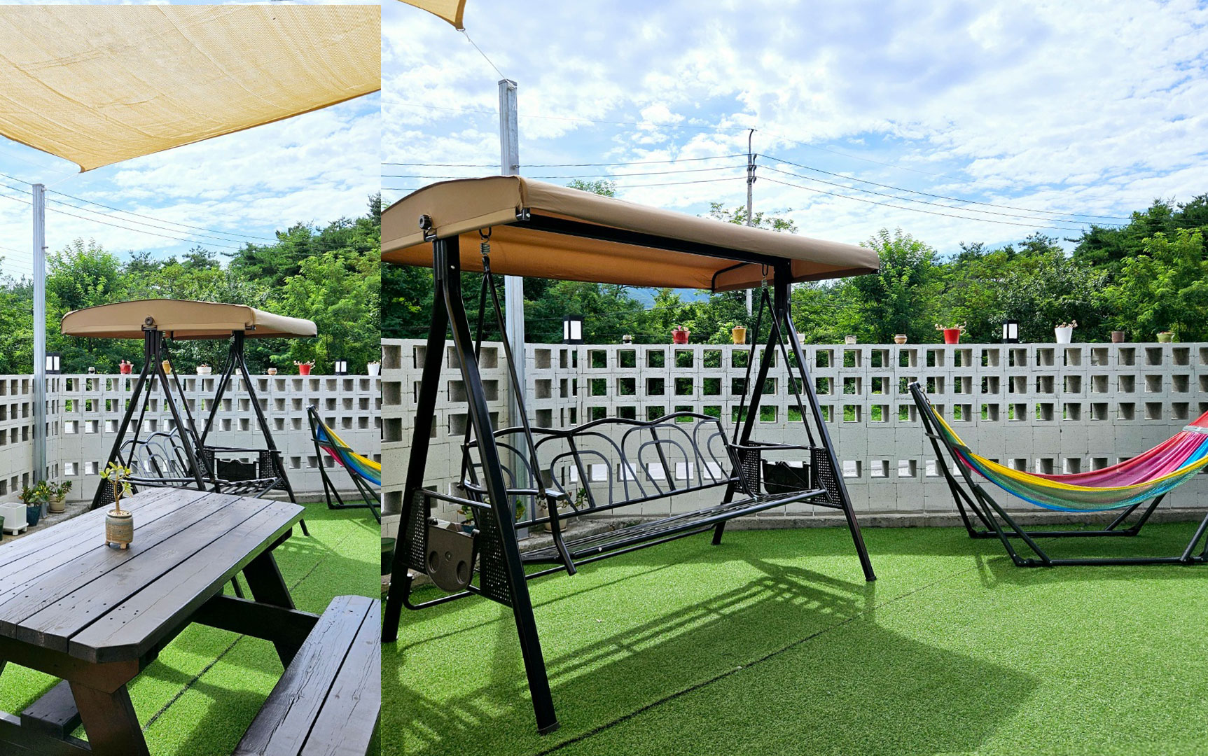 잘 꾸며진 정원에서 즐거운 시간을 보내세요.
