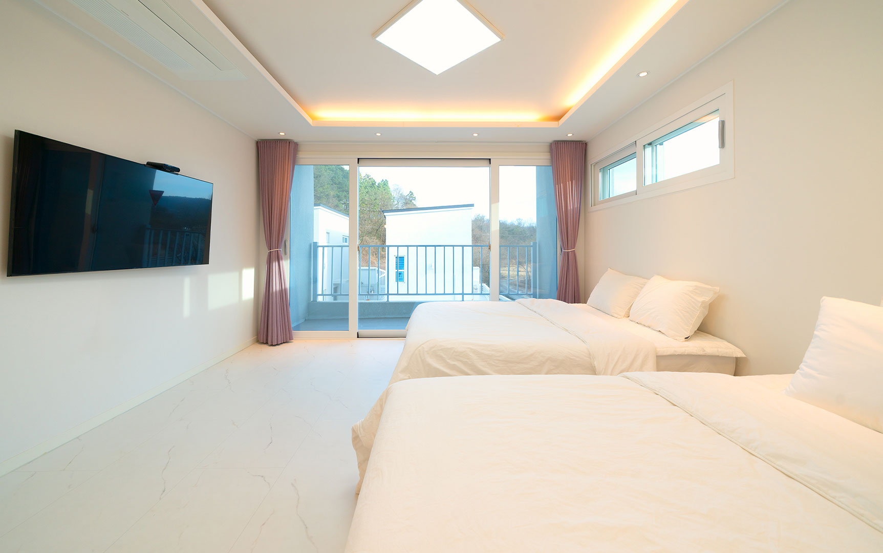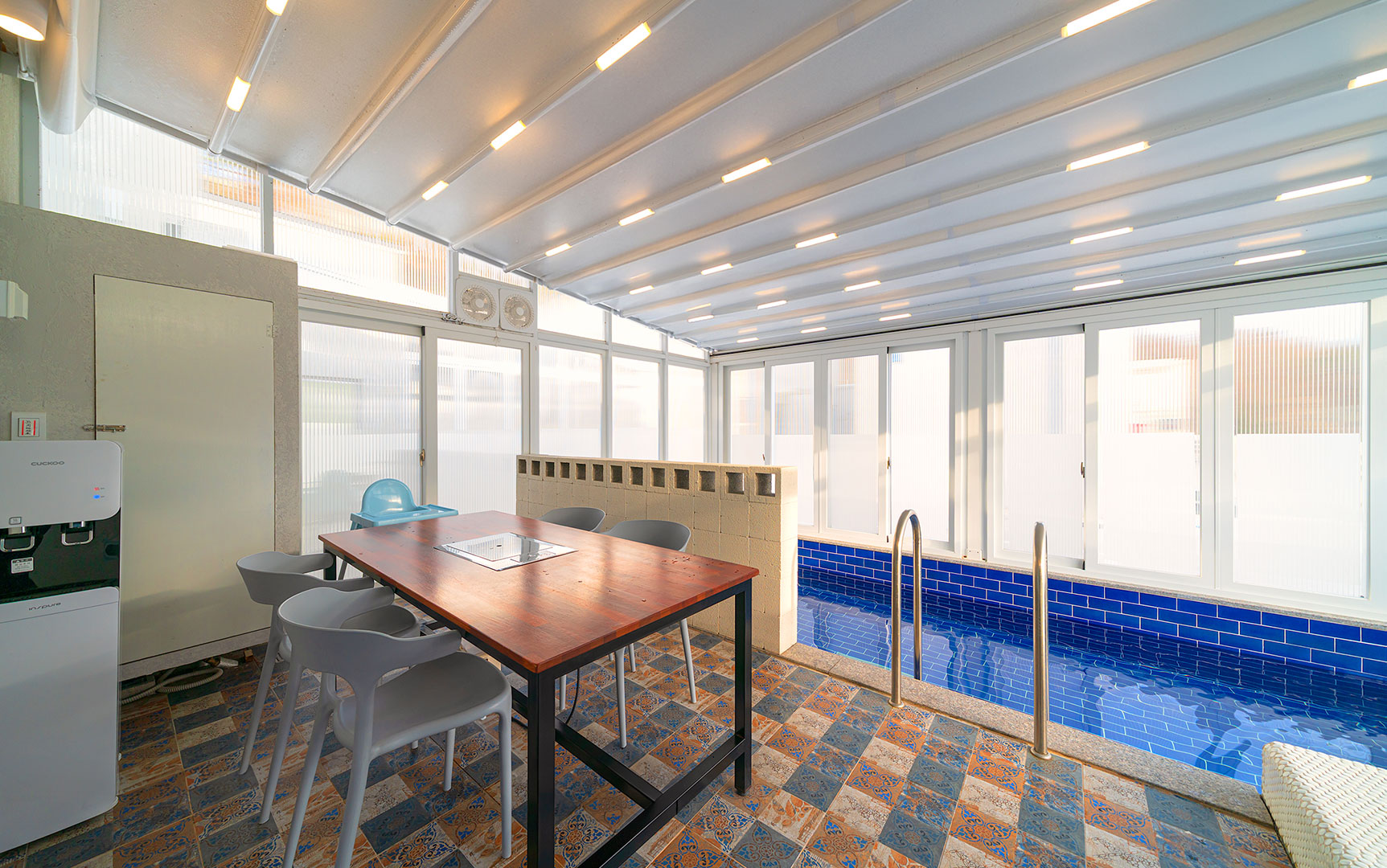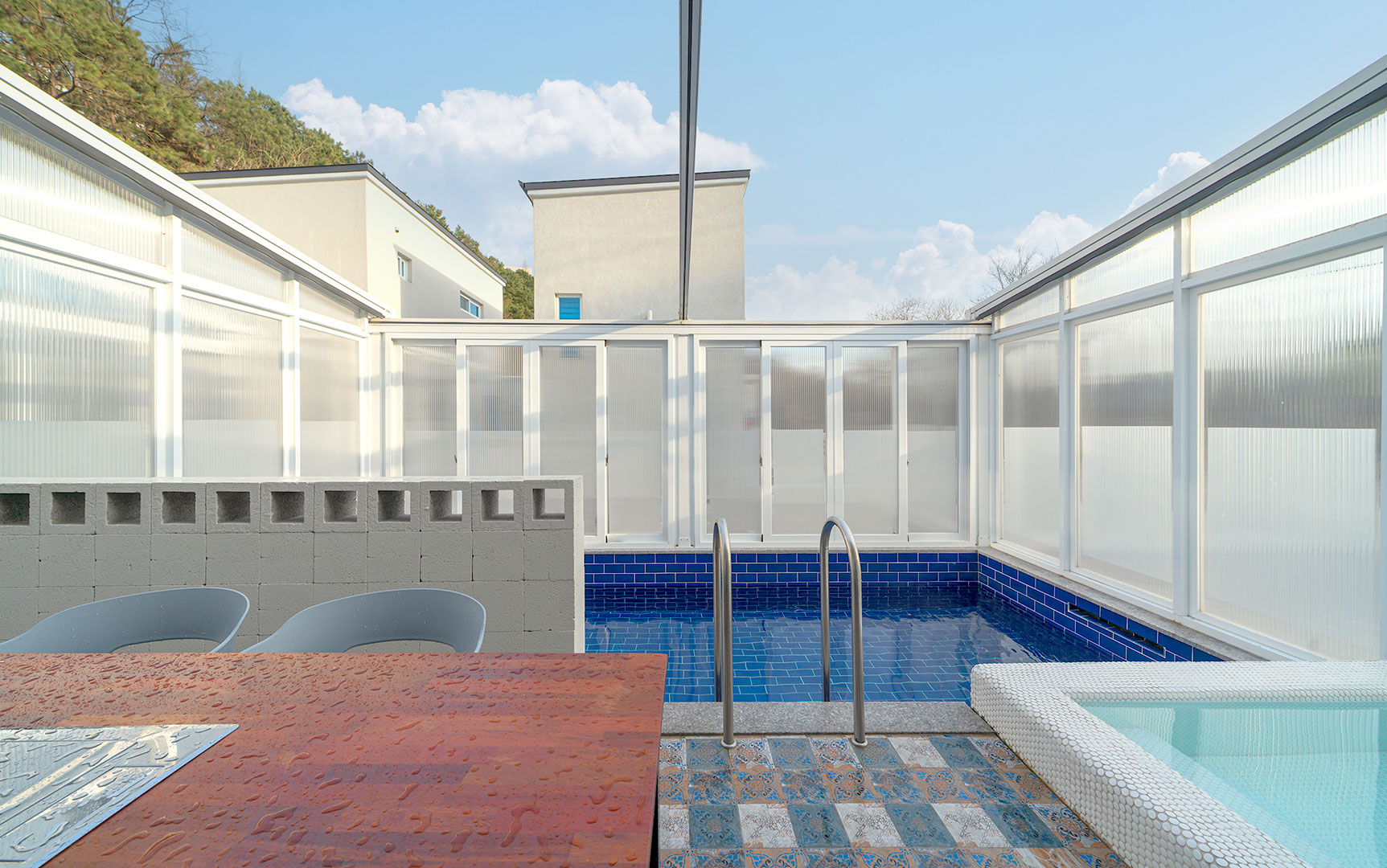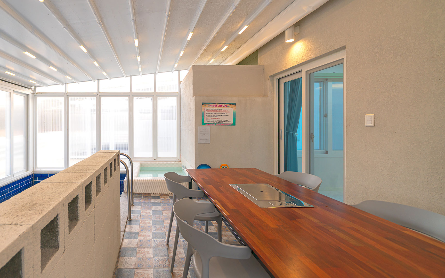 자연을 느낄 수 있도록 개폐 가능한 미온수 수영장과 자쿠지, 개별 바비큐, 찜질방 기준 2인 / 최대 6인
